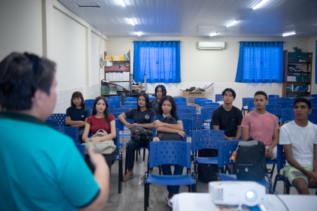 Durante o processo, os jovens participantes foram convidados a refletir sobre temas que envolvem o cotidiano, a cultura local e o futuro do território. As atividades envolveram oficinas, produções textuais e trocas de experiências com o objetivo de ampliar a capacidade de expressão e de valorização da identidade amazônica.