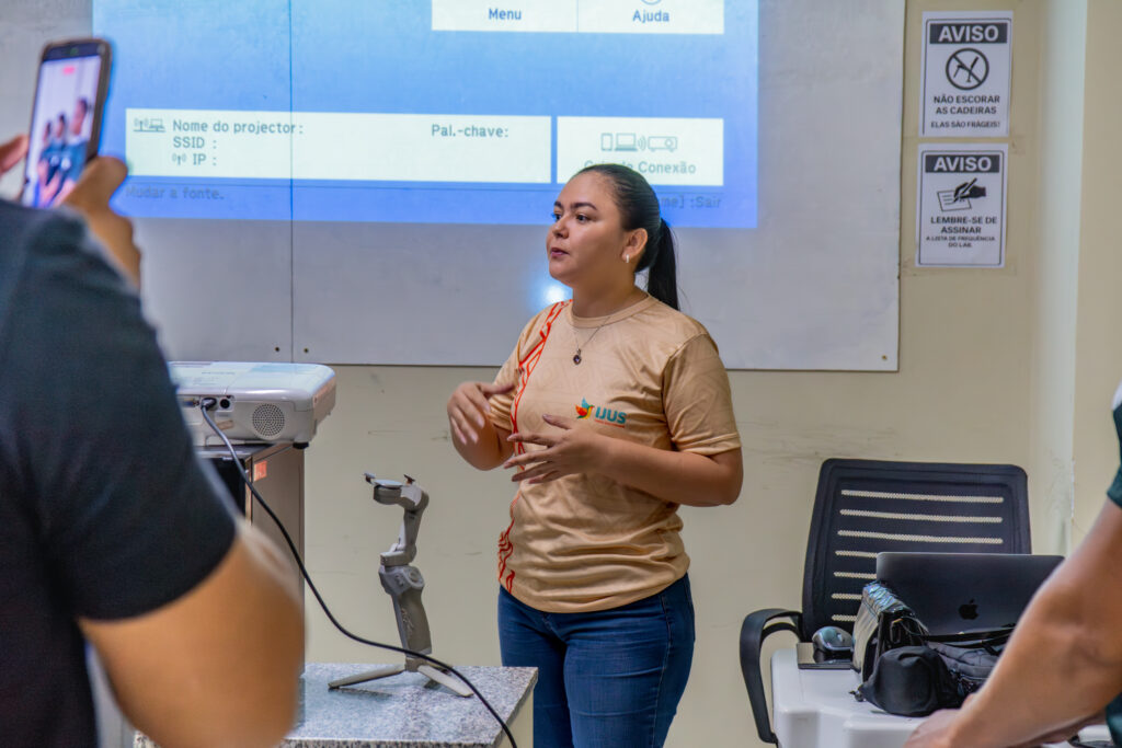 A oficina integra o ciclo de capacitações do projeto, que busca fortalecer o protagonismo da juventude por meio da comunicação digital, preparando jovens do território para atuar com redes sociais, criação de conteúdo e produção audiovisual.