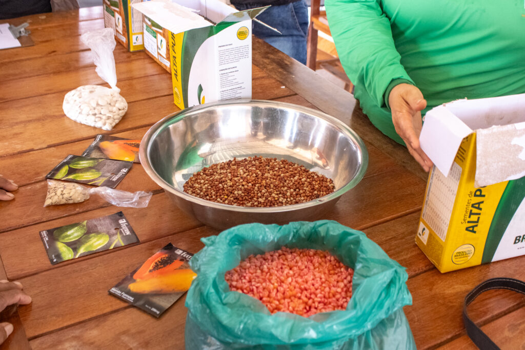 Durante a ação, foram implantadas mudas florestais e frutíferas como moringa, acerola, cedro, tangerina, rabutã, ingá, jatobá, limão-cidra, andiroba, açaí, buriti e bacaba, além de espécies agrícolas de ciclo curto, como milho, abóbora, maxixe e mamão. A combinação dessas culturas permite retorno produtivo mais rápido para as famílias, ao mesmo tempo em que promove a restauração ambiental a médio e longo prazo.